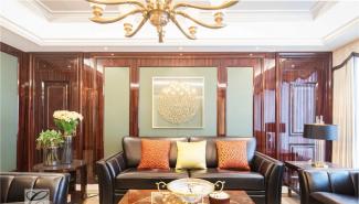 浸潤時光,在被綠植貫穿的自然園林,造一處寓所,與家人相伴相聚,收獲夏日的美好光陰。carpenter客廳進入客廳,第一主視覺是穩重大氣的歐